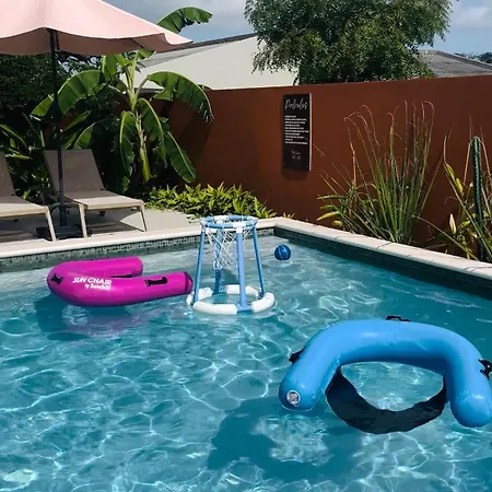 広々とした寝室1室のTerra77 Tropical Vacation Home, Private Garden, Pool, Parking And Bbq ウィレムスタッドアパートはScherpenheuvelから歩いてわずか6分の場所に位置し、プ-ルの景色を見渡せます。 この100m²のアパートにはテラスがあり、究極のリラクゼーションを楽しむことができるプライベートなプールも提供しています。
